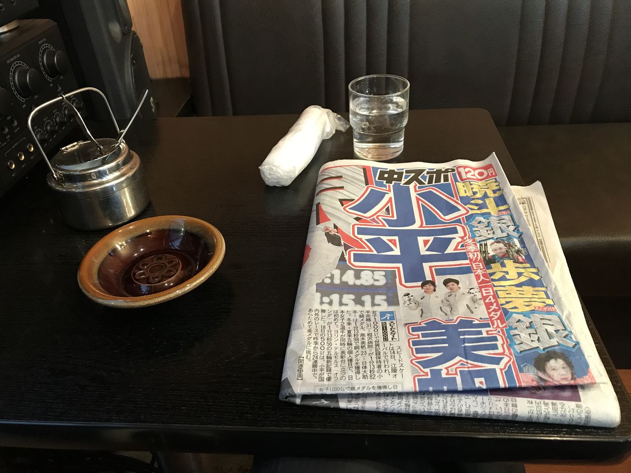 スポーツ新聞に灰皿のある昔ながらの喫茶店。