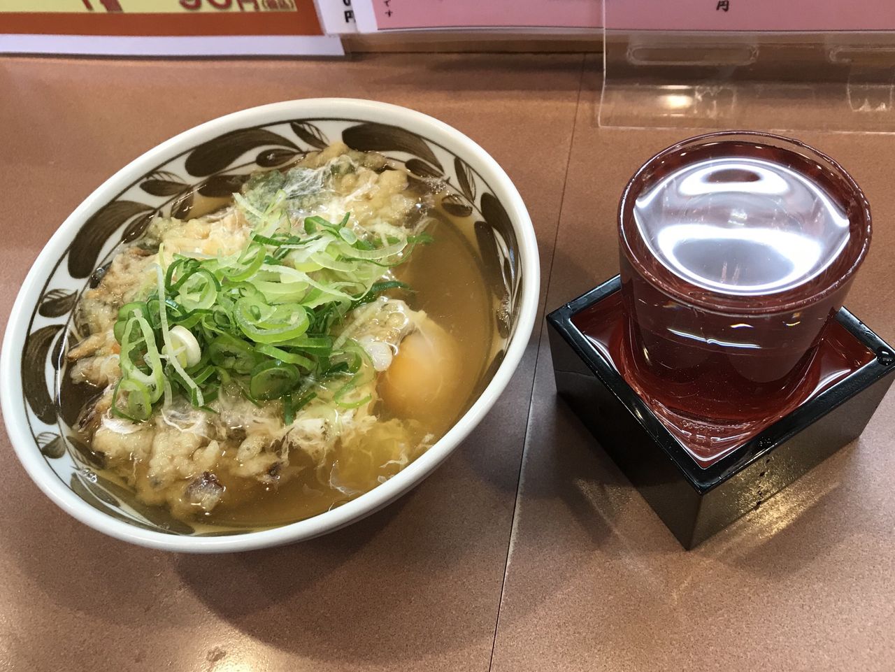 天つま卵落としに熱燗。