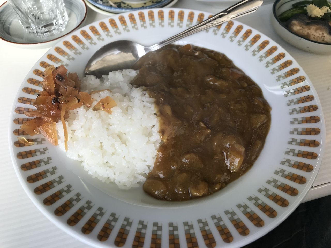 〆ているとカレーもあるってことでカレーを茶碗ごはんでお願いしたりする。スパイシーな牛筋カレーがもう一本ビールをお願いしようかな!?なんて思わせますが…、涙を呑んで諦めます。