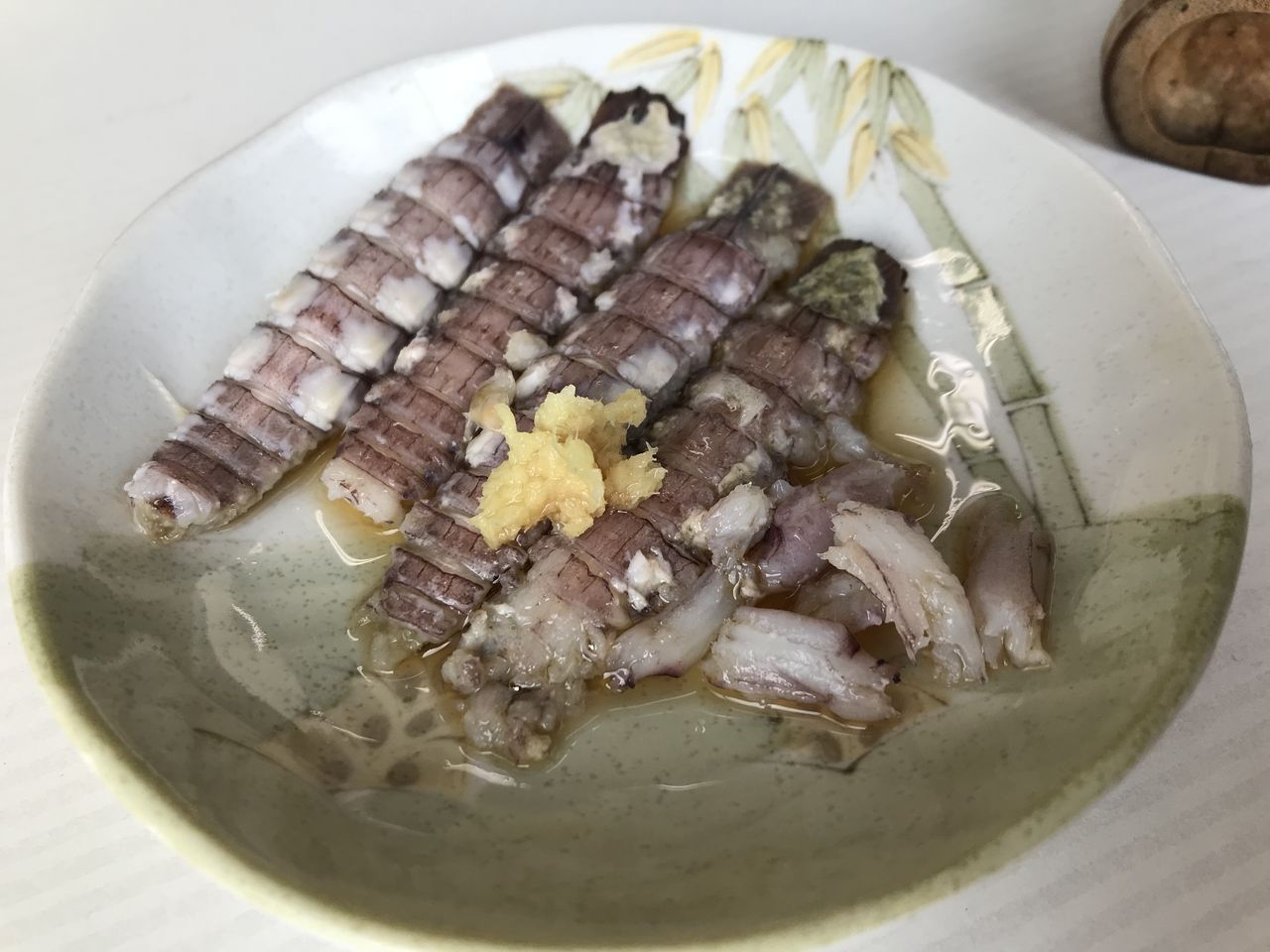 入店した時にお姉さんが必死で向いていた蝦蛄。三杯酢でいただきます。爪まで向いてくれているのが嬉しい。また蝦蛄の爪が旨いんですよね。
