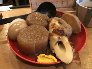 昼からこんなおでんで徳利をひっくり返すなんてのは、お天道様に申し訳が無いんですが、これが至福の時なもんで止められませんな。