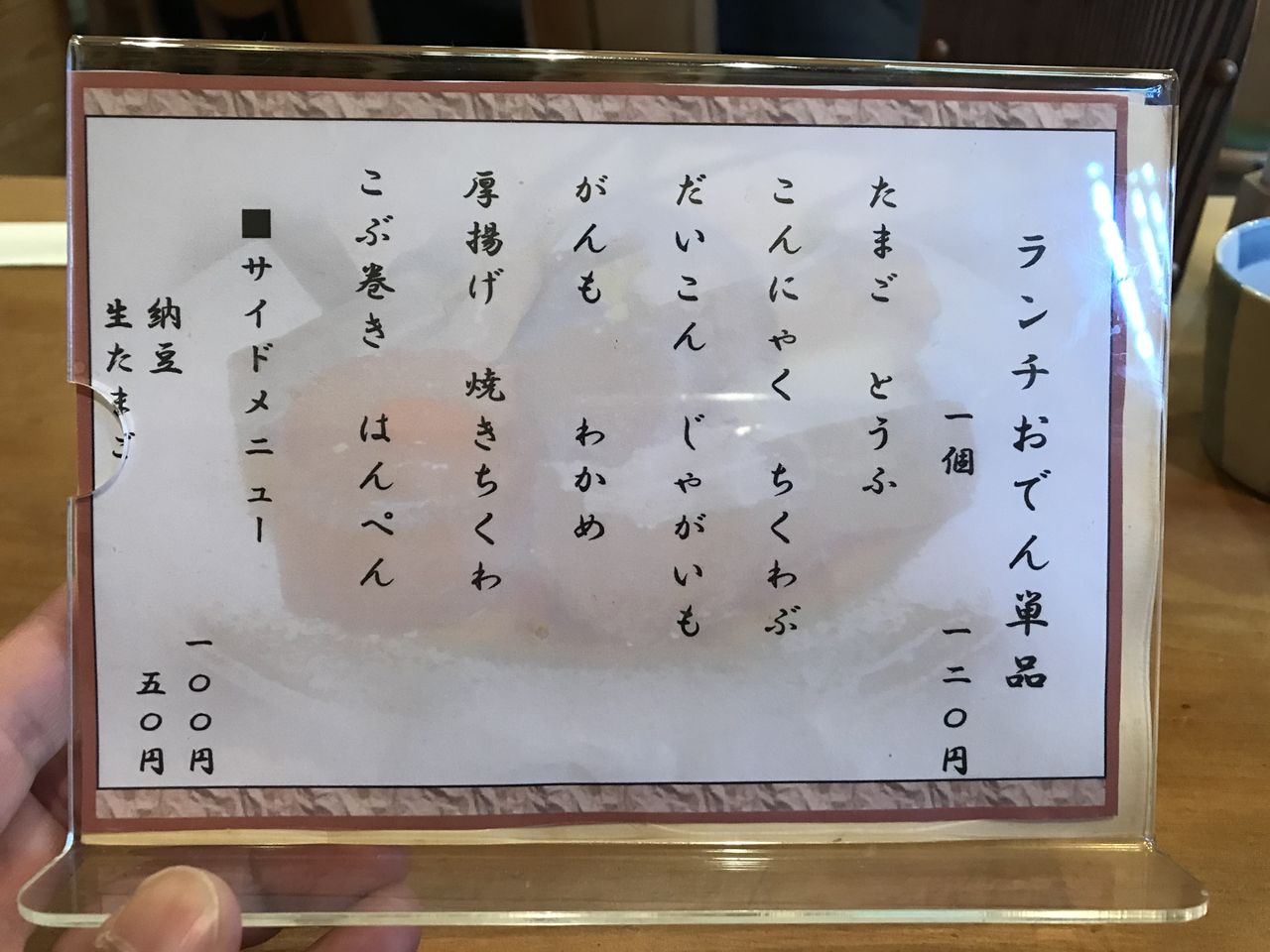 おでんをつまみつつランチメニューを選びます。