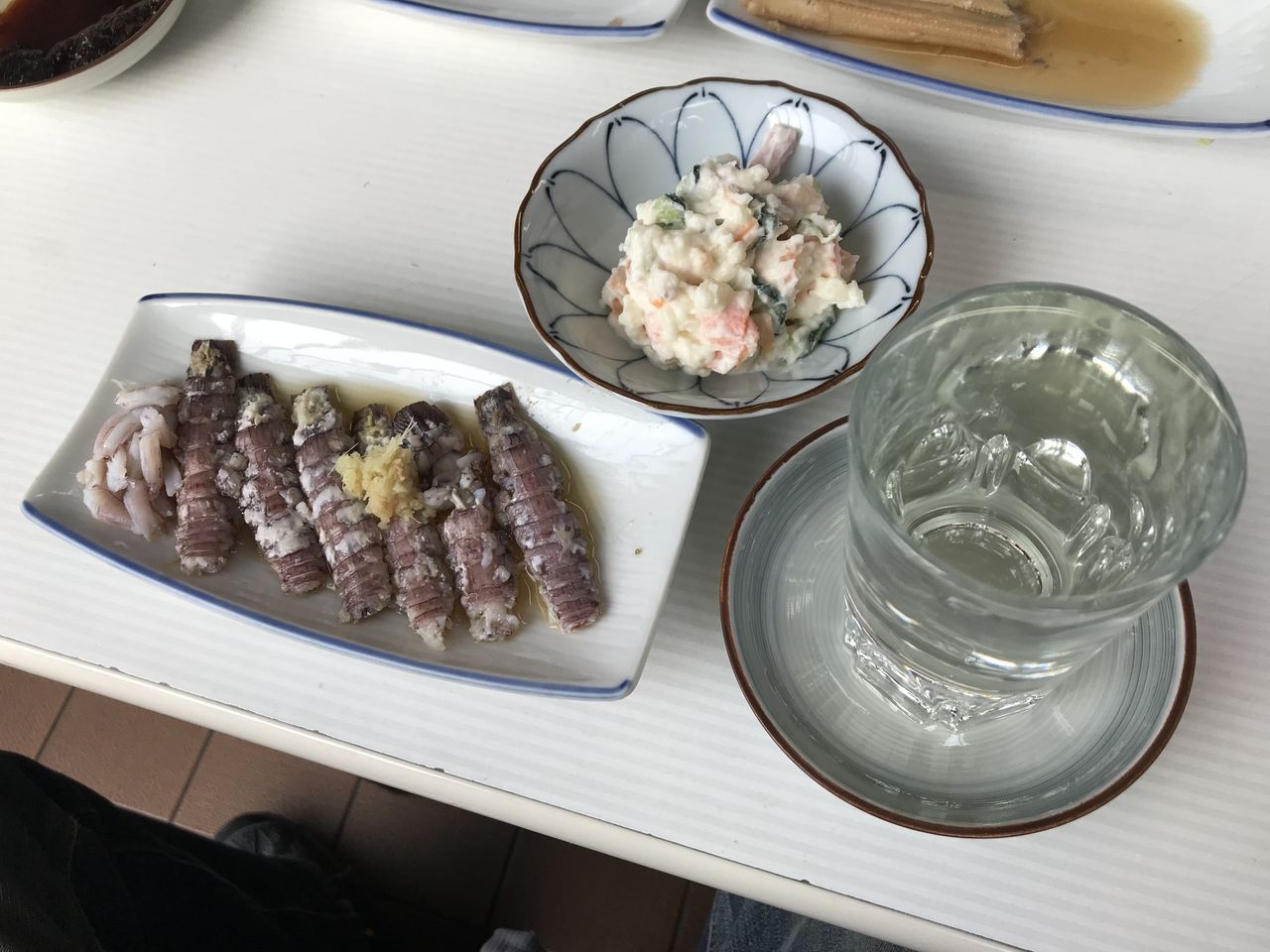鰹刺、イカゲソ、きゅうり@食堂魚源