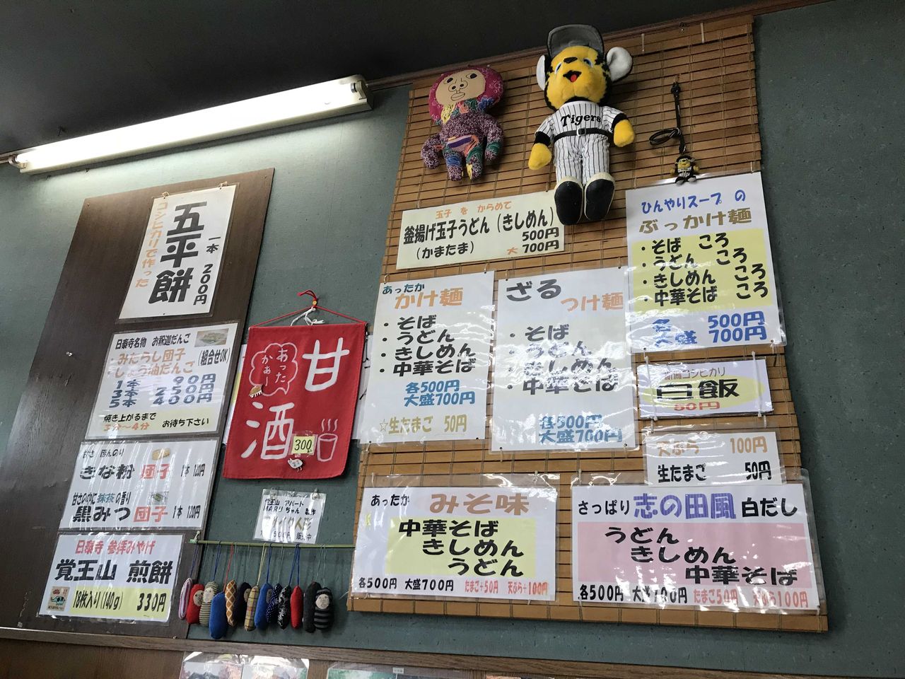 茶店のメニューに麺類。今お思えばこちらはお米屋さん。白米に卵かけごはんを頼めばよかった…。
