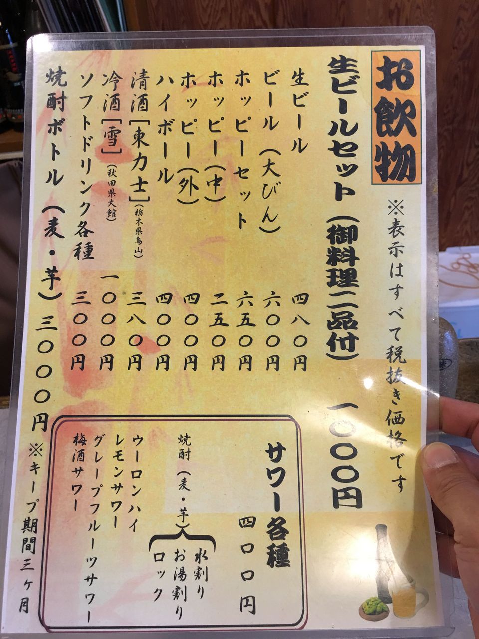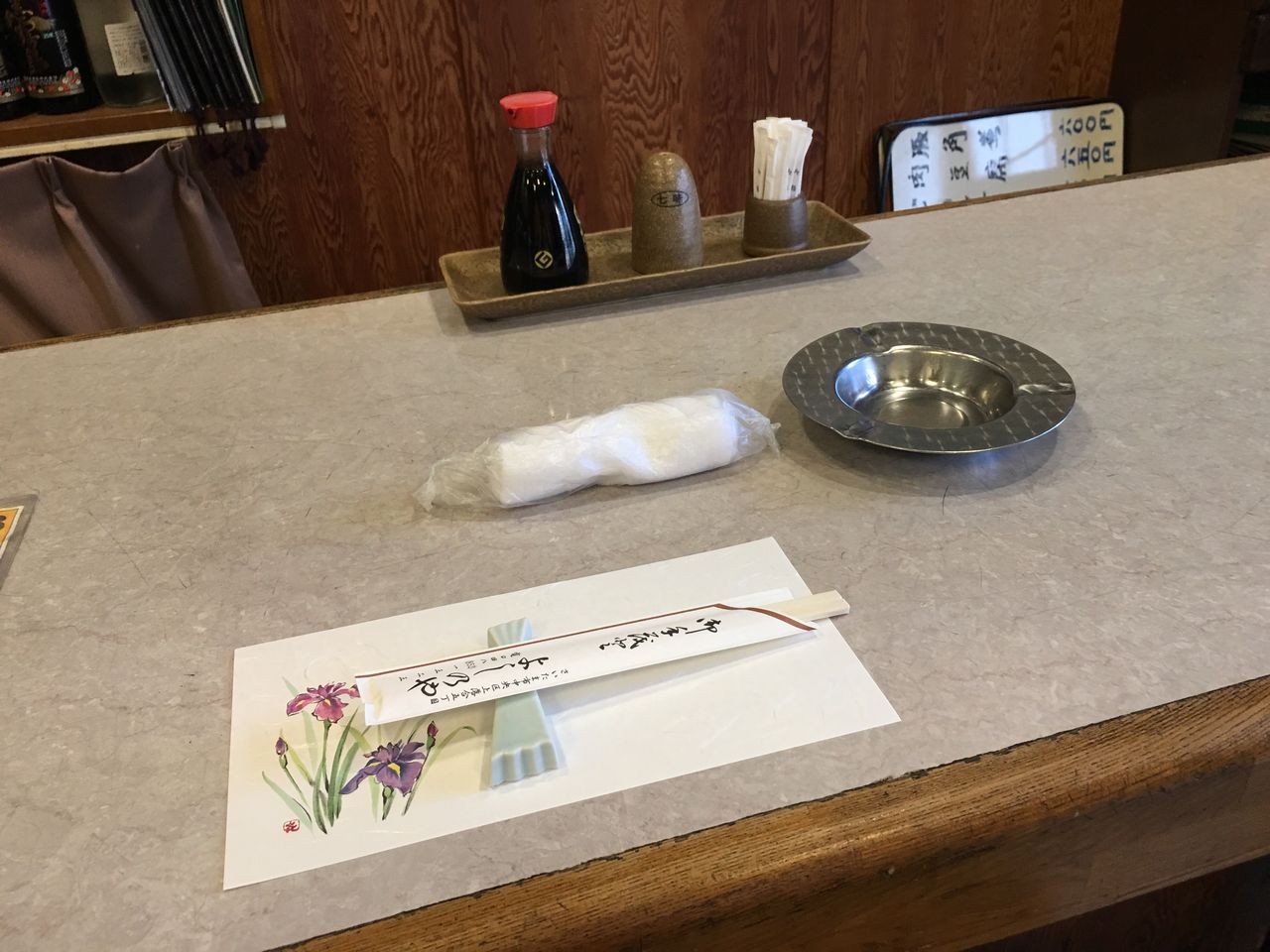 入店と同時におしぼり灰皿箸がセッティングされます。