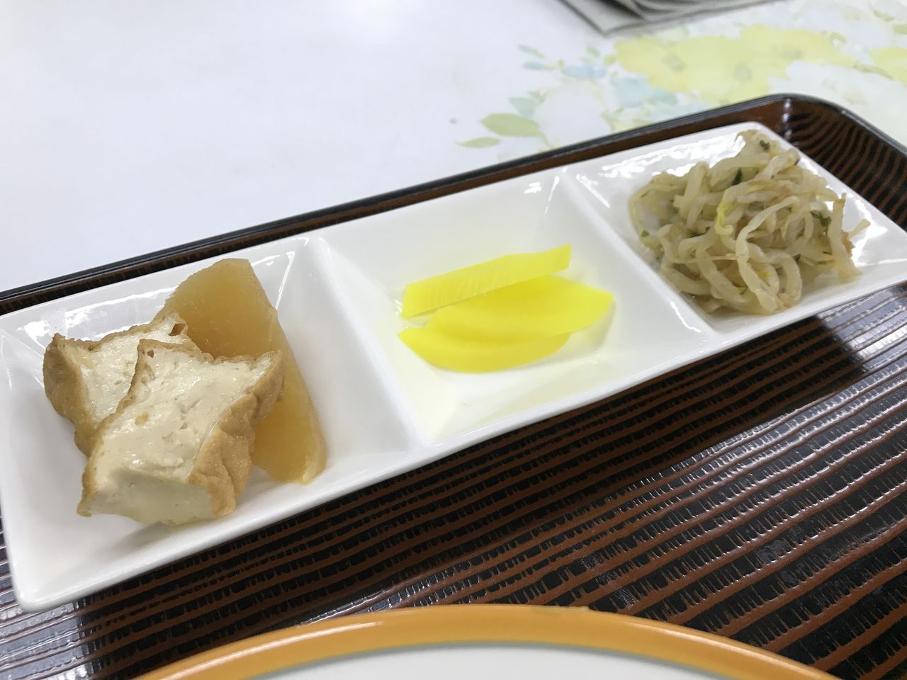 着席いたしますとお姉さんがお茶を持ってきてくれて「朝定でいいですか?」っとおそらくこの時間にほとんどの客が食べるであろうメニューを提案してくれました。