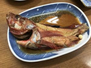朝酒中目の前にあったキンキを別注、熱燗追加。