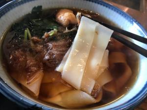 とにかく具は青いネギと牛肉。名東店さんは配膳が早いためか、ネギはしゃっきりしたものもちらほら残っている。
