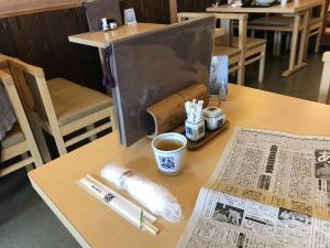 カレーうどんをお願いしてスポーツ新聞を開きます。