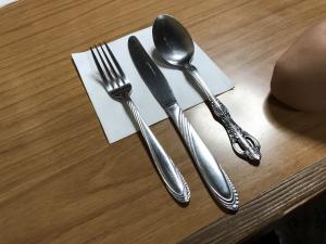 ナプキンにおかれたナイフとフォークが洋食屋に来たと実感させる。