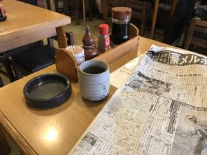 働く人たちのお店なので、新聞と灰皿はマストアイテムだ。
