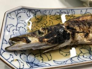 ごっついカマスの塩焼きにオクラ。