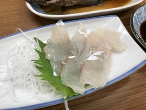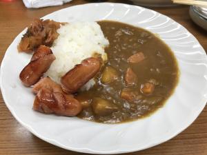 コチ刺、メバル煮、白菜漬、カレーライスウインナートッピング
