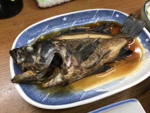 コチ刺、メバル煮、白菜漬、カレーライスウインナートッピング