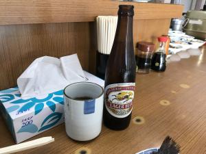 ちゃんこ屋の大将の隣に席をいただきまして朝酒開始。