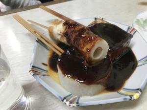 さっと煮られた大根、豆腐、ちくわに味噌がったくさん。