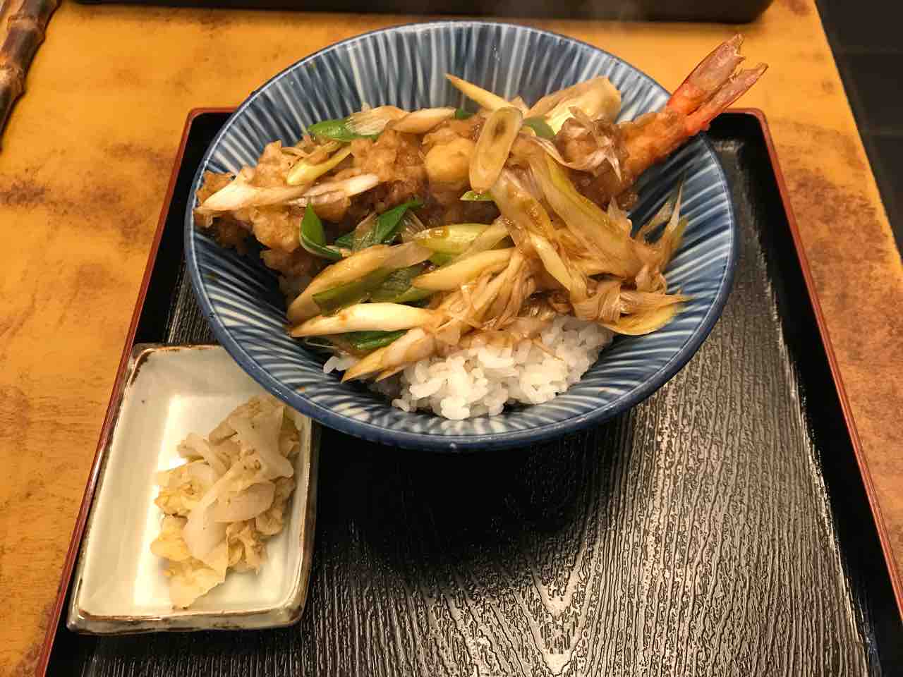 そんな訳で美味しいところを分かっている麺類食堂のシェフは海老より衣が多い海老天で天南丼を作ってくれる。