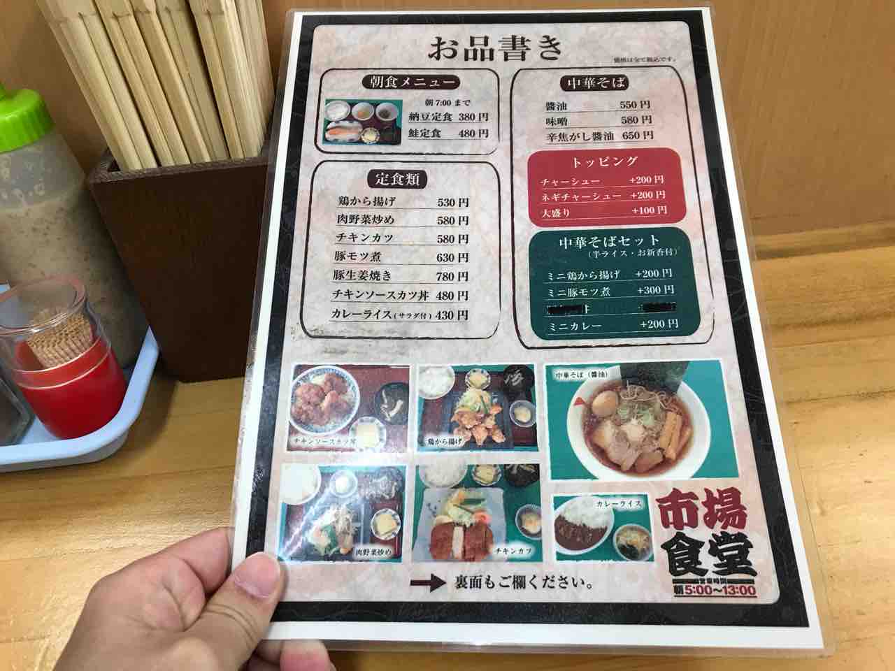 市場食堂って屋号は結構市場では一般的で、そこら中の市場にある。