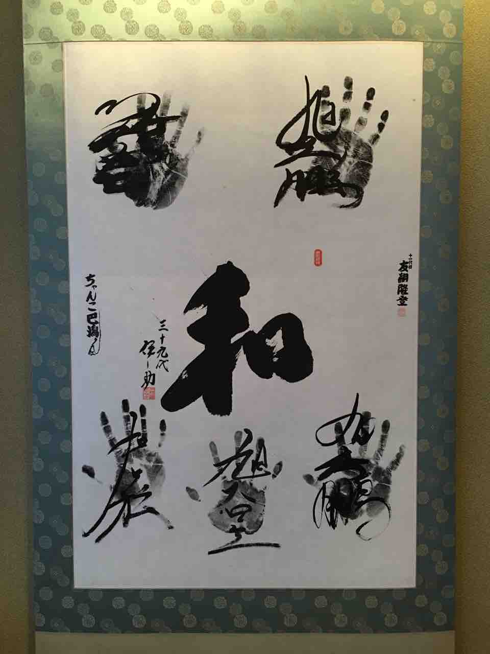 我が家一押しの友綱部屋の力士一同の手形を押した掛け軸。