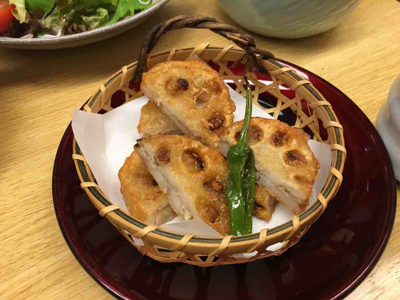 レンコンの包み揚げ。