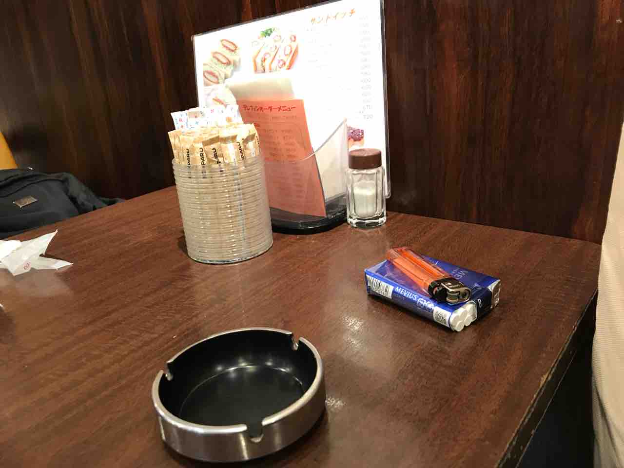 机上に灰皿&塩のある昔ながらの喫茶店ですから、観光や家族連れには不釣り合いな気がしますが…。