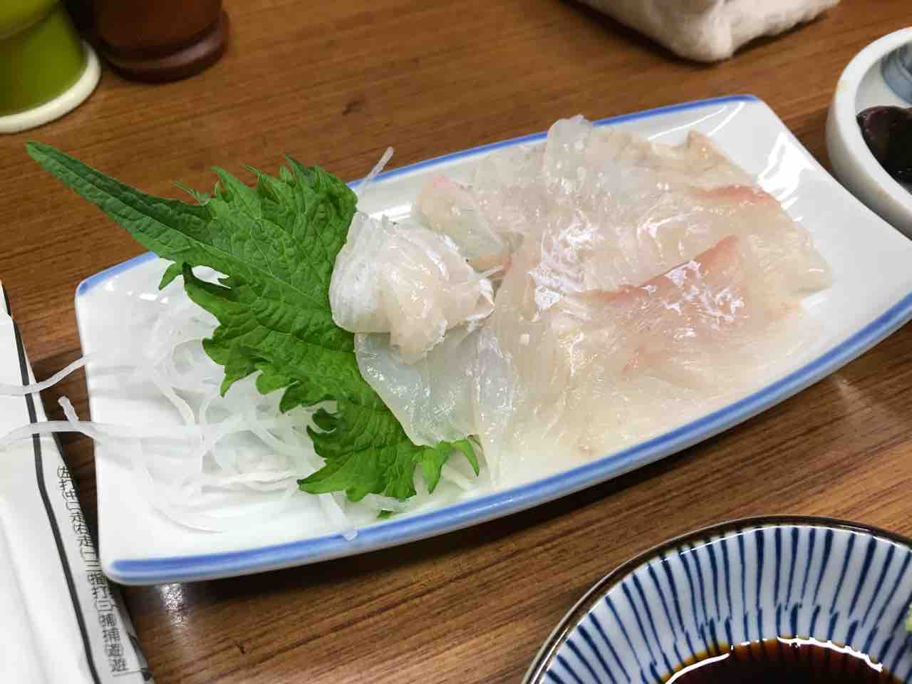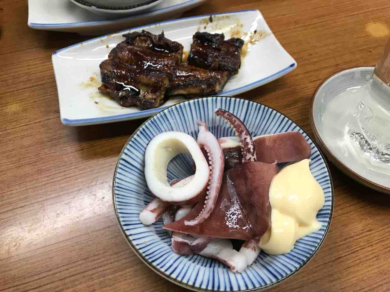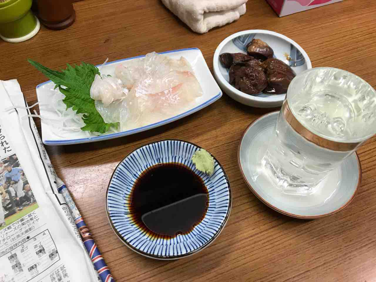 焼き魚がまだ上がっていないようなので、刺身と肝煮にしました。