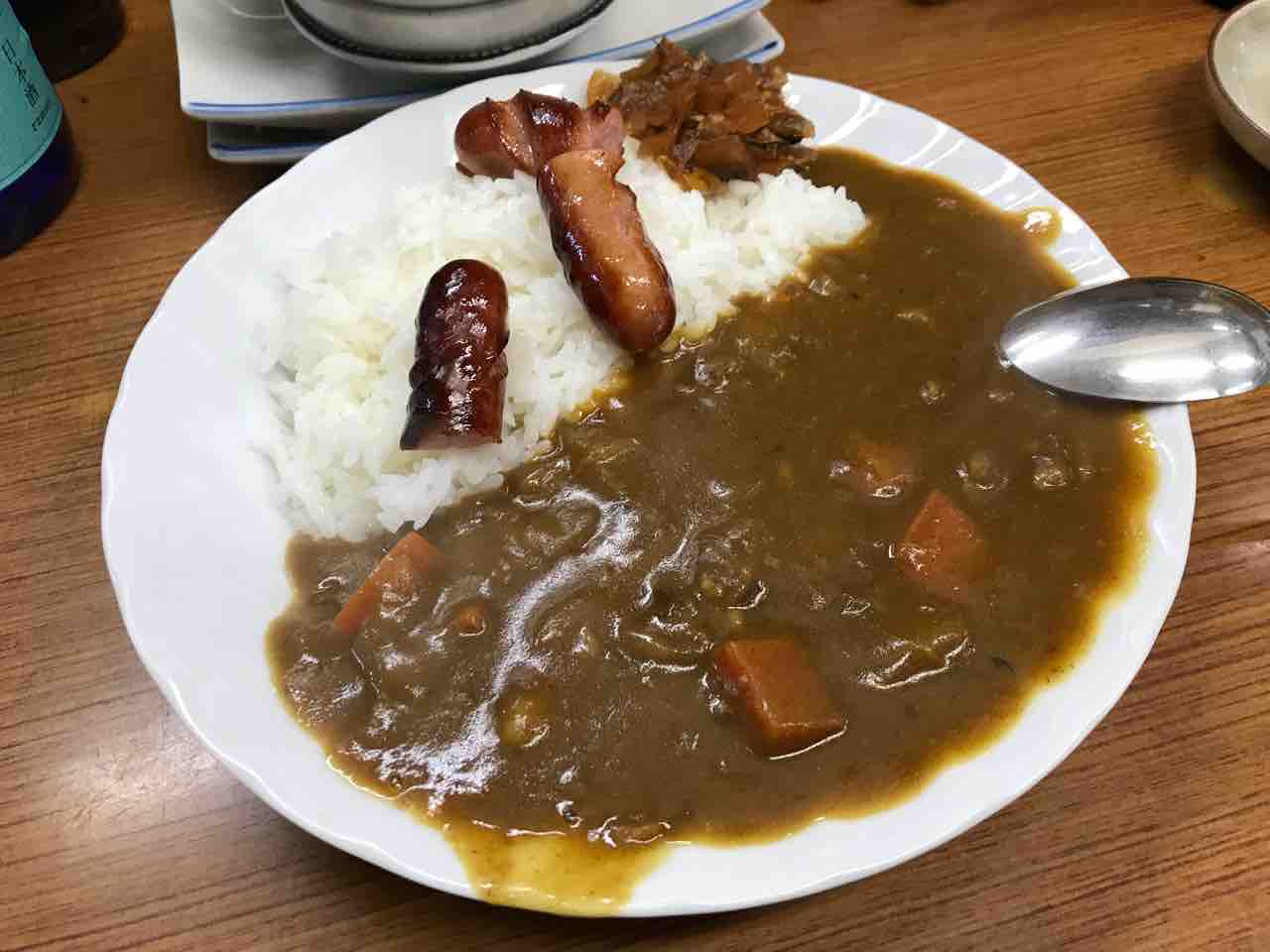 今日は著椀ご飯カレーにウインナーをオン!和風カレーには味噌汁がマストである。