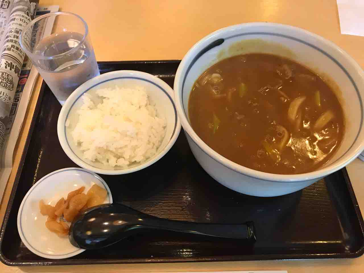 そんな訳でカレーうどんに半ライスをつけました。福神漬けがついてくるのが嬉しいですね。