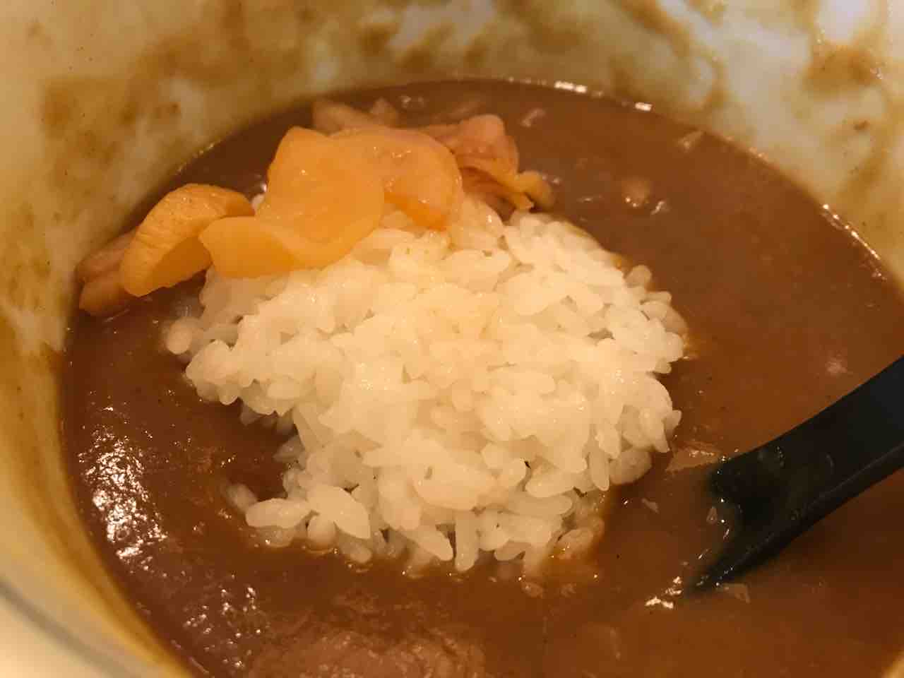 うどんを一通り片づけたら、ご飯をぶち込み、カレー茶漬けにしていただきます。