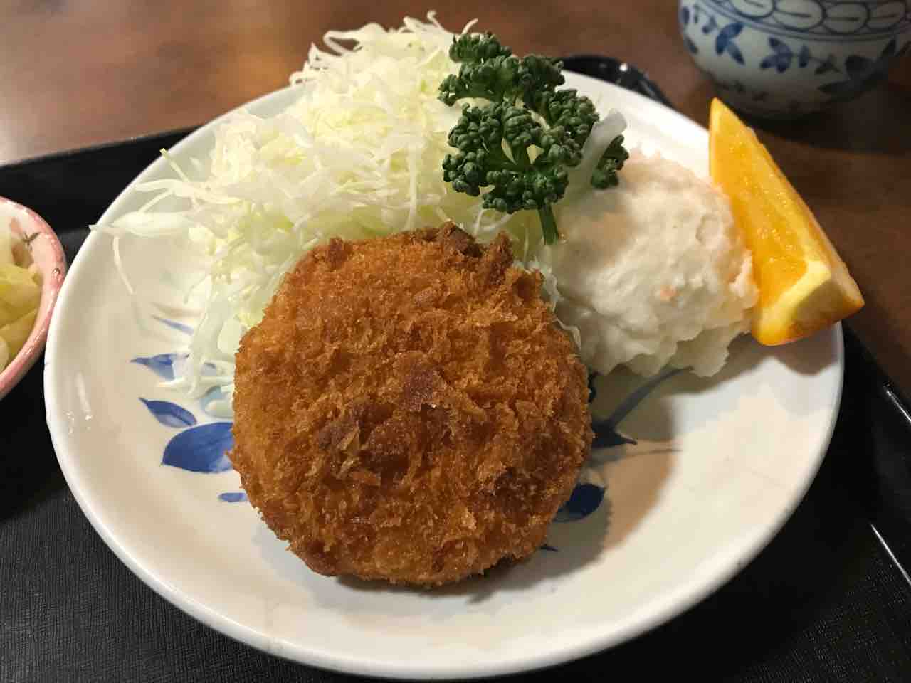 本日はクリームコロッケにポテトサラダ。キャベツにデザートまでついた豪華版ですよ!