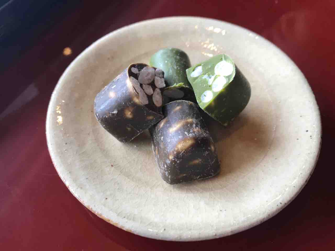 お茶のおかわりをお願いしたらチョコレートがお茶請けに出てきました。