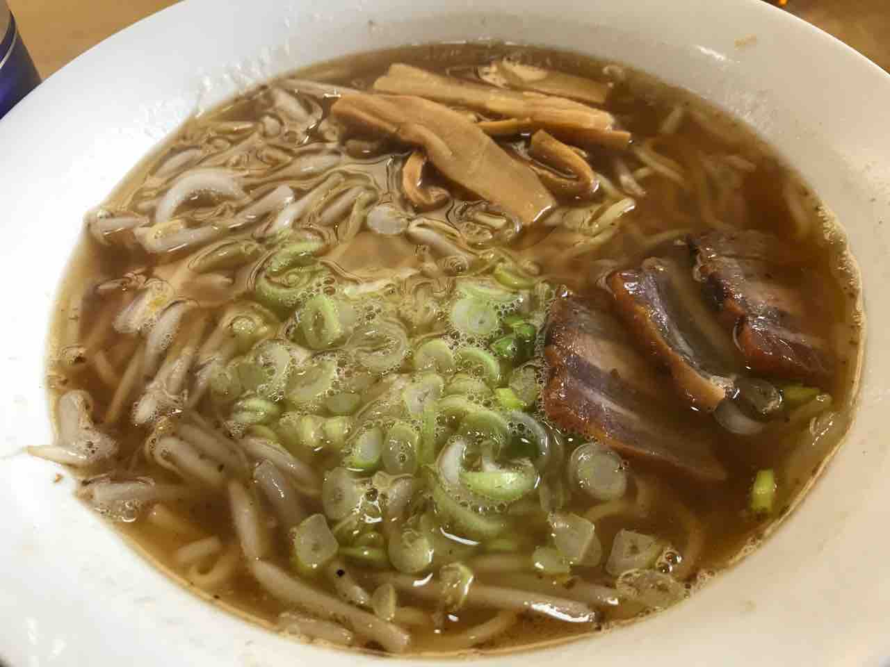 具はシナチク、もやし、叉焼に刻み葱どっさり。