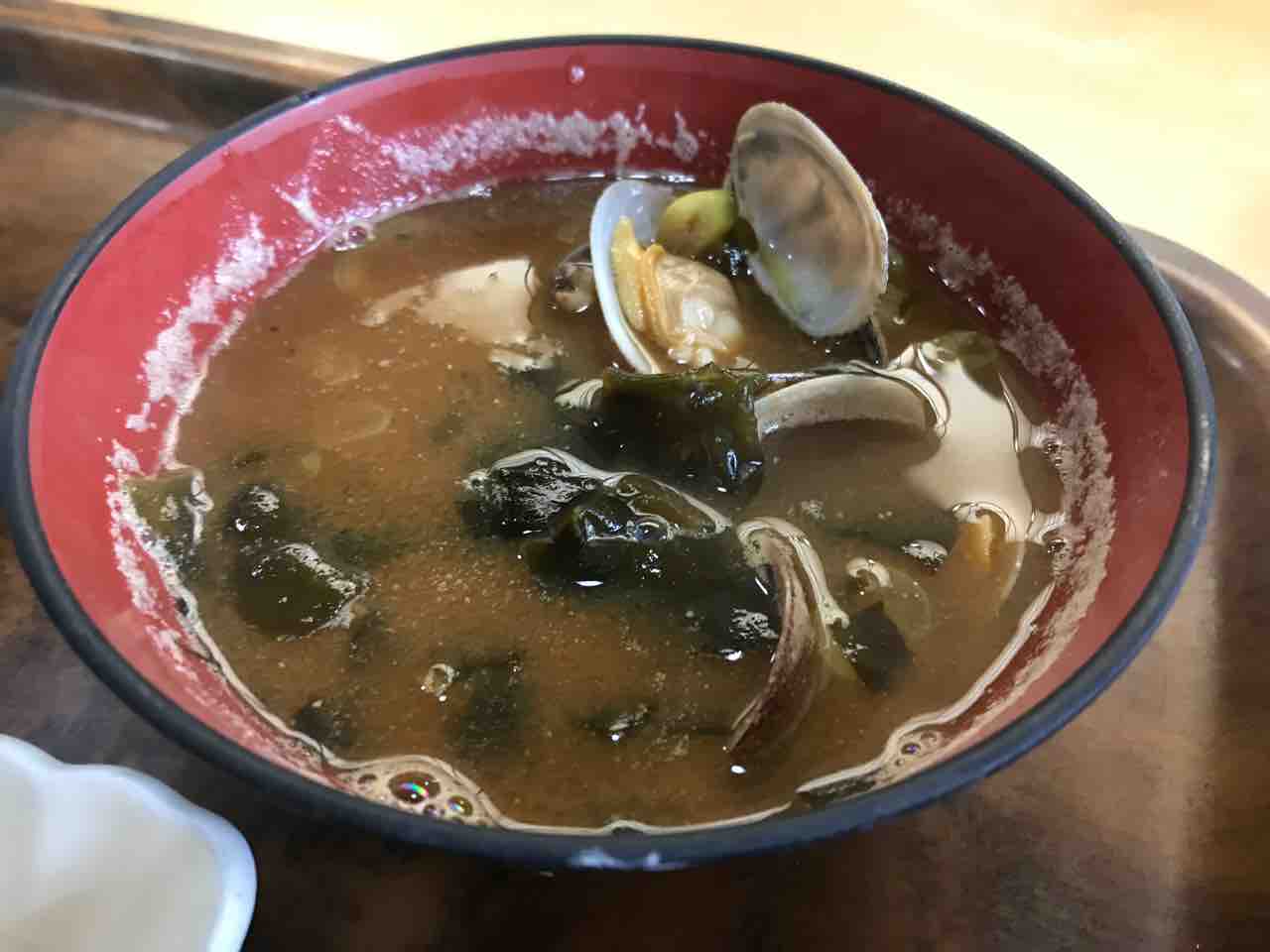 お姉さん一人で切り盛りしているので、汁物丼物は一緒に出てきないようですね。