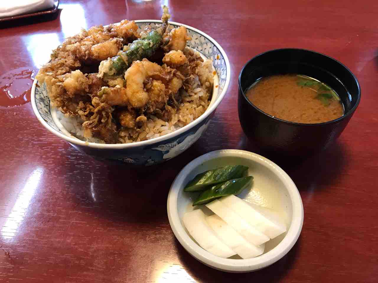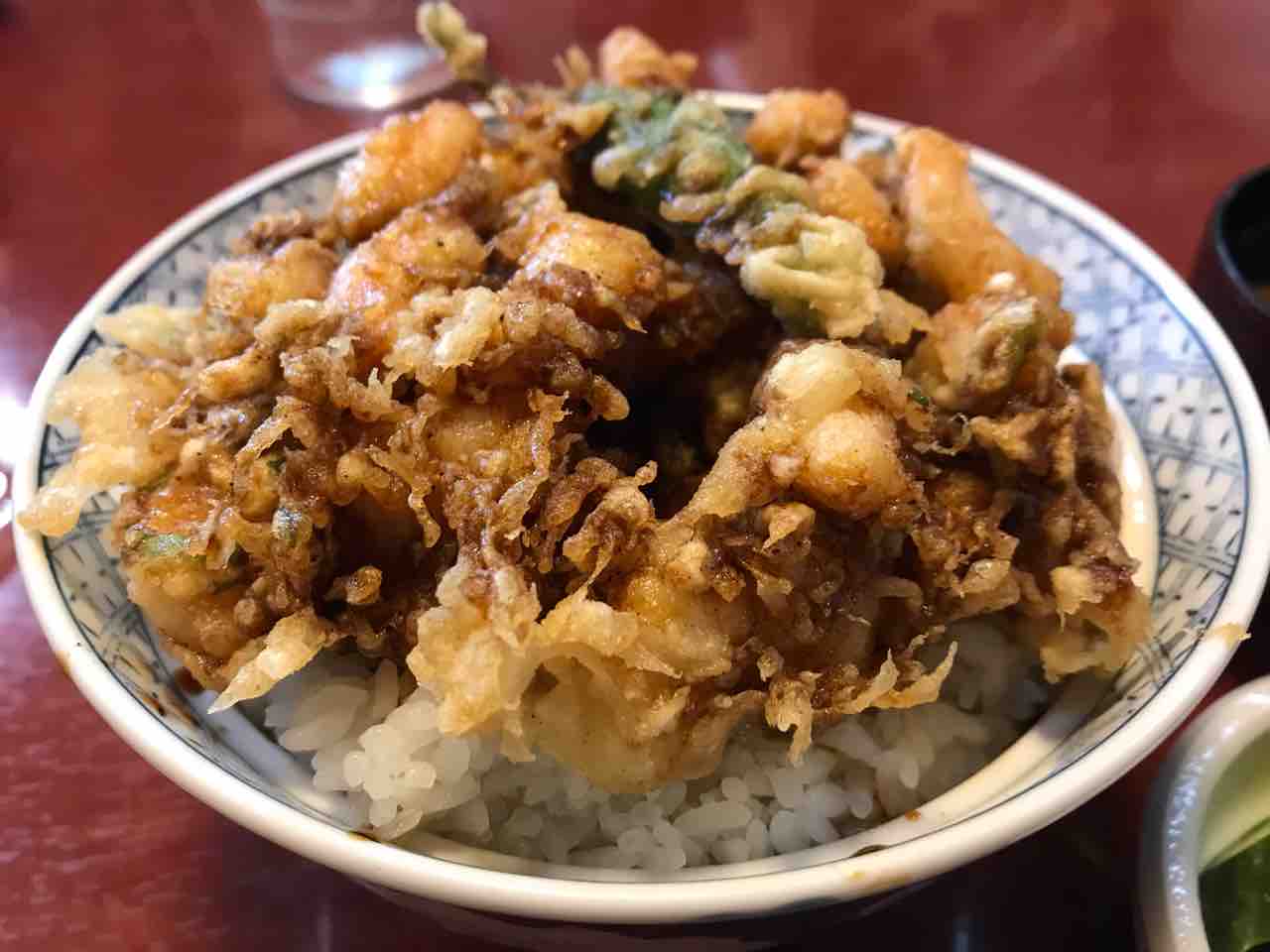 でっかい海老天をありがたがる風潮はありますが、こちらは小さい海老のかき揚げ丼。