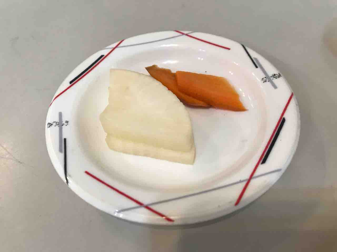 机上にあるテイクフリーのお新香で巻き返しを図ったんだが、時すでに遅し。