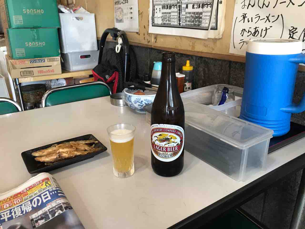 ビールをお願いし、大姉さんに何かつまみになるものはないかね?と相談すると、「今日は刺身もあるし、何がいいかしらね。」と親身になって考えてくれました。