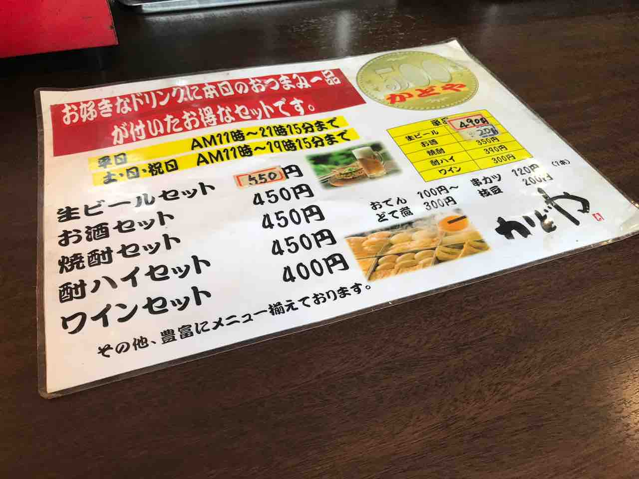 「とりあえずビール!」っと声が出かかったが、カウンターに置かれたセットメニューが目に入る。