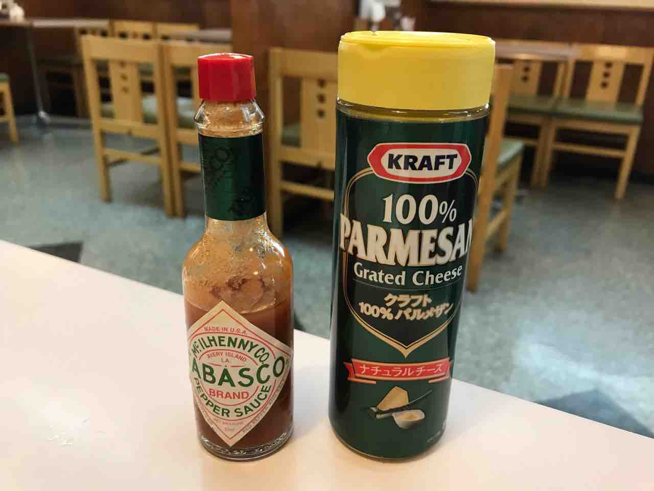 しっかりパルメザンチーズにタバスコが出てくるってのは嬉しいじゃありませんか!