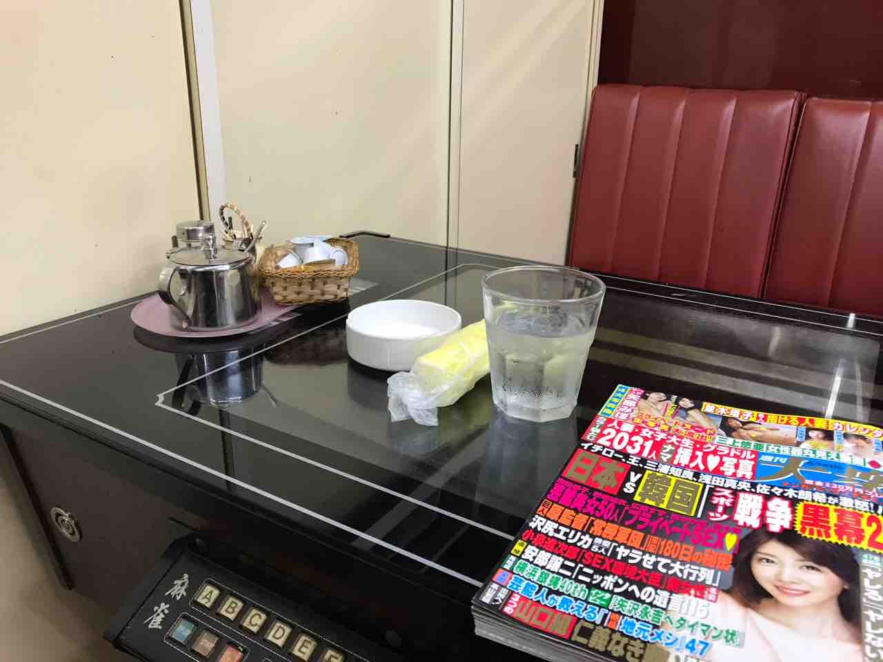 猥雑な雑誌の袋とじはすべて開かれているんですが、お姉さんが配膳してくれるので、私が袋とじを開くのはちょいと修業が足りないようです。