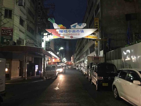 柳橋中央市場水産ビルの灯りが無いと、さみしいですなぁ。