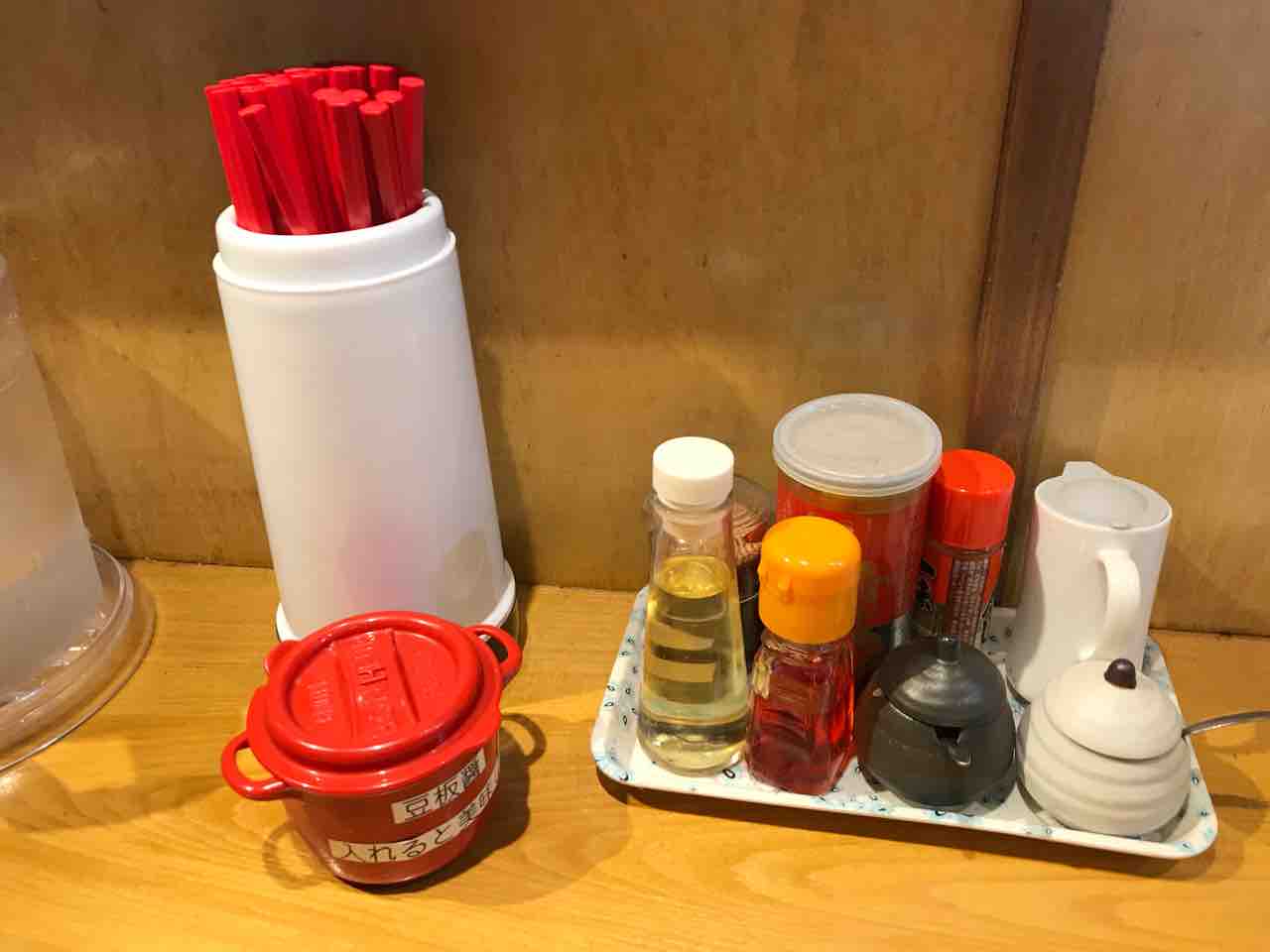 フジサワさんは亭主のあたりも柔らかく、机上に調味料たくさんってのは好感が持てる。