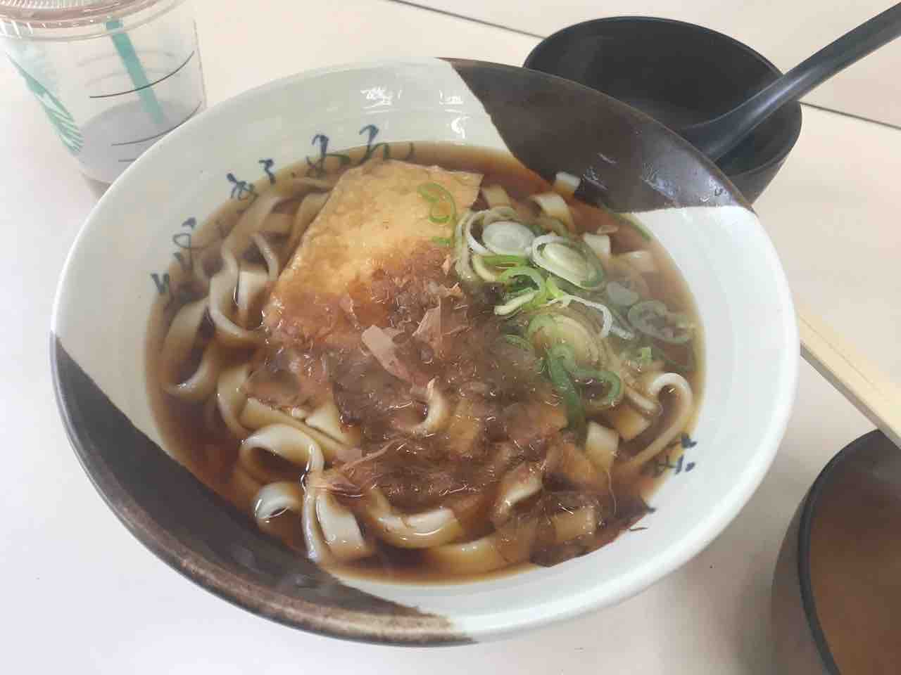 きしめんをお願いすれば、温かい汁に麺。油揚げにかまぼこ青菜あたりが当たり前のように載っていて、花かつおがどさっと載って出てくるもんなんです。