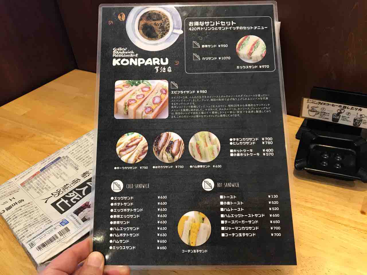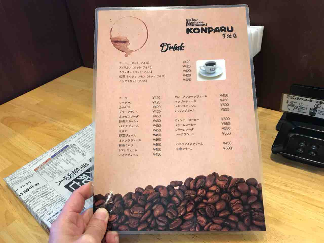 メニューは他店と変わりませんな。なんつったってここはコーヒーとサンドイッチの店コンパルなのですから。