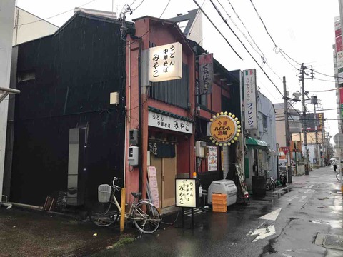 詳細はchakuwaki(名古屋市/千種区)にお任せすることにして、雑多な雰囲気の裏通りにある、うどん中華そばみやこさんにお邪魔することにした。