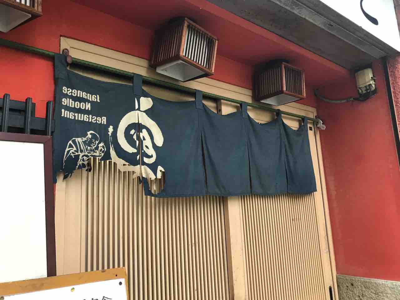 関東風暖簾にうどんの文字。土地柄か英語表記もありますね。