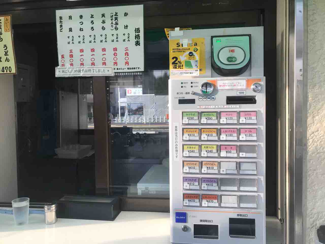 前回訪問時。「紙どんぶりの提供は終了しました*」に嘆いたのだが、今回は券売機に「そば・うどん・スープの持ち帰りは終了しました。」の断り書きに驚かされる。