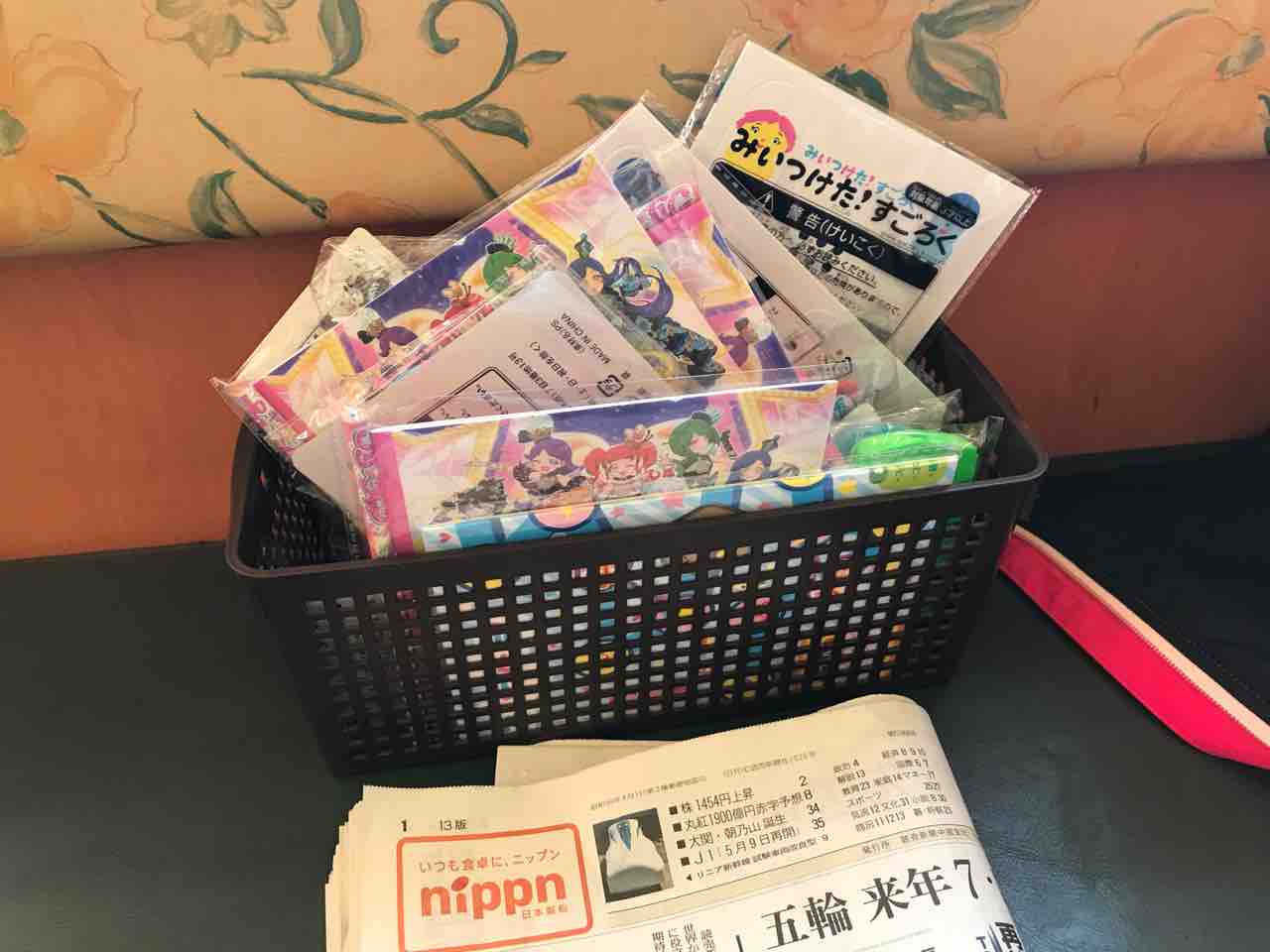 待機中に籠に入ったおもちゃをごそごそやる大人ってのもシュールだ…。