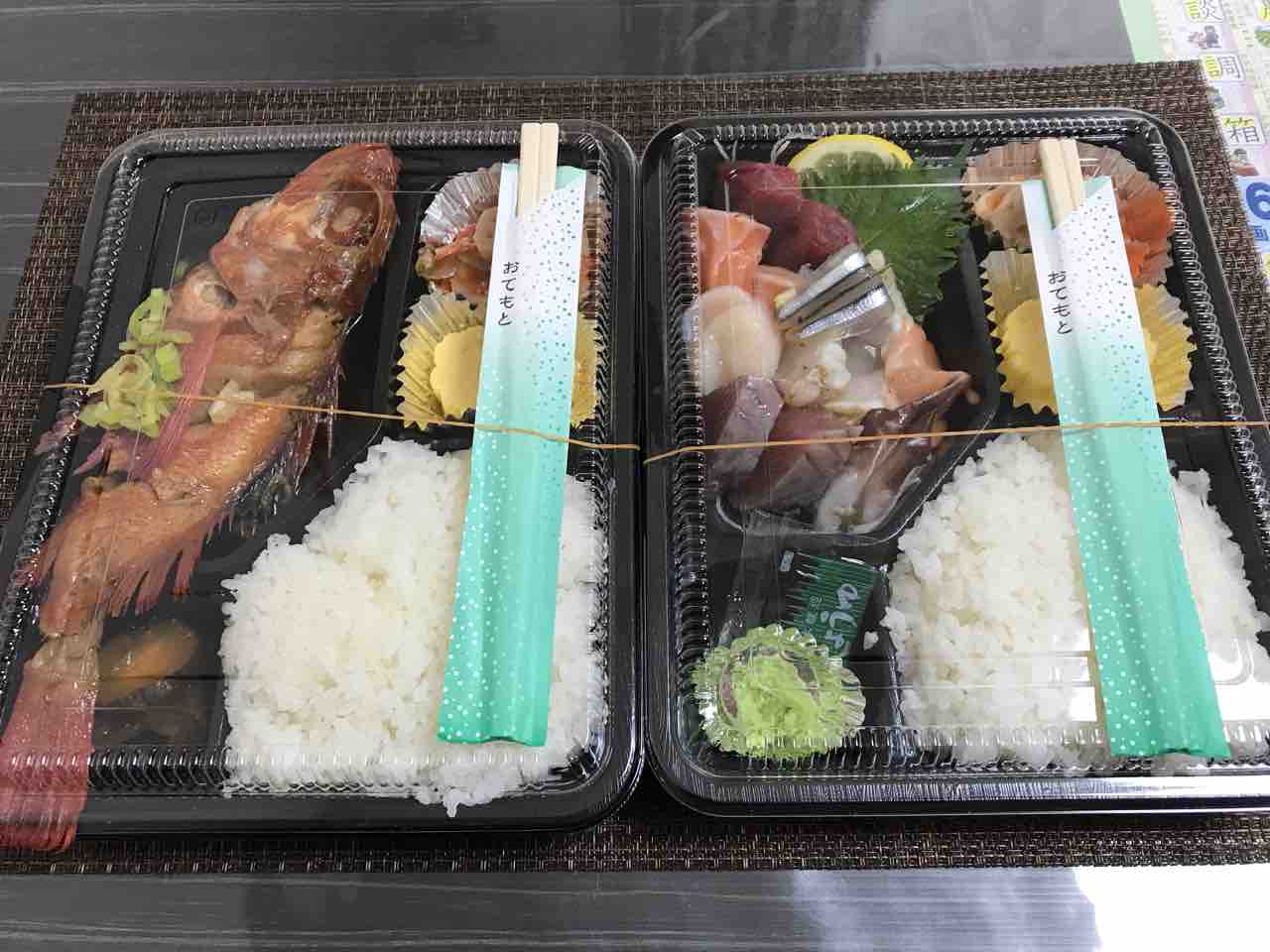 いちますさんの唐揚げもうまいんですが、本日はお刺身弁当×2、煮魚弁当×1にしておきました。