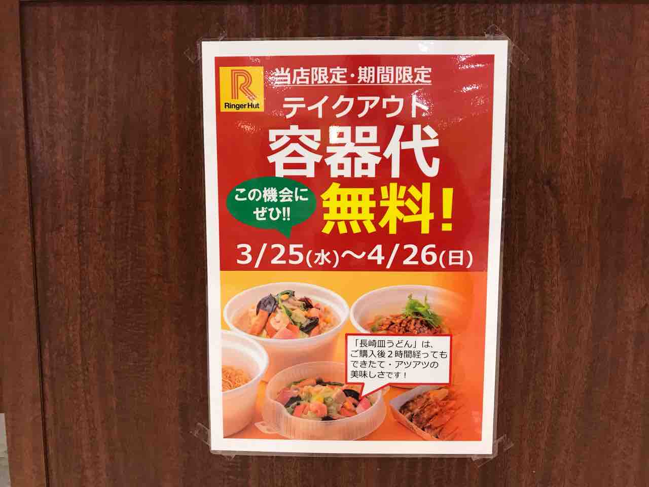 リンガーハットのサービスは容器代無料。