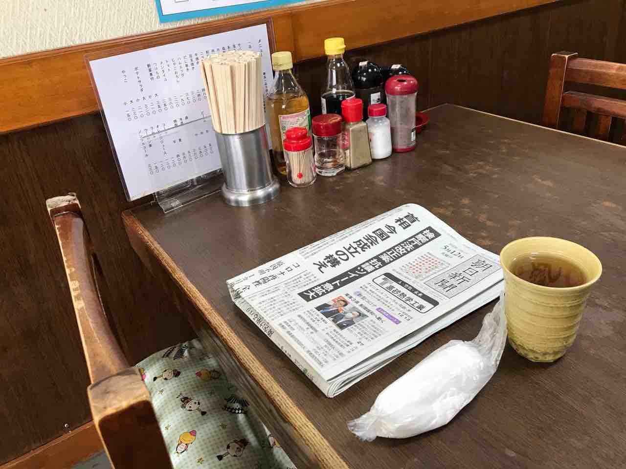 机上には基本調味料がたくさんあり、スポーツ新聞もある私好みのお店である。